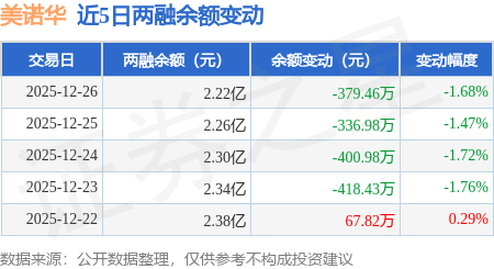 证券之星消息,12月26日,美诺华(603538)融资买入499.52万元,融资偿还878.98万元,融资净卖出379.46万元,融资余额2.22亿元。