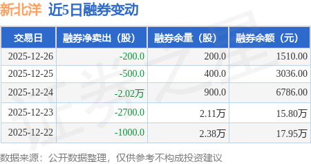 证券之星消息,12月26日,新北洋(002376)融资买入639.64万元,融资偿还1201.27万元,融资净卖出561.63万元,融资余额4.39亿元。