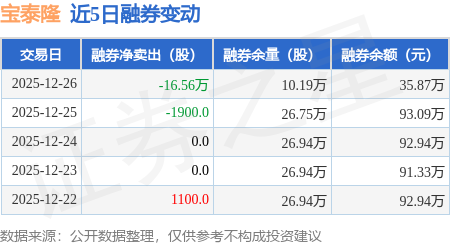证券之星消息,12月26日,宝泰隆(601011)融资买入1306.11万元,融资偿还2075.12万元,融资净卖出769.01万元,融资余额2.54亿元。