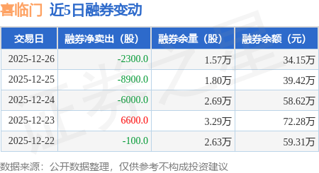 证券之星消息,12月26日,喜临门(603008)融资买入1721.32万元,融资偿还2575.29万元,融资净卖出853.96万元,融资余额6.89亿元,近20个交易日中有13个交易日出现融资净买入。