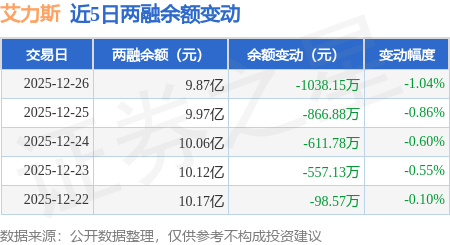 证券之星消息,12月26日,艾力斯(688578)融资买入3598.99万元,融资偿还4634.81万元,融资净卖出1035.82万元,融资余额9.8亿元。