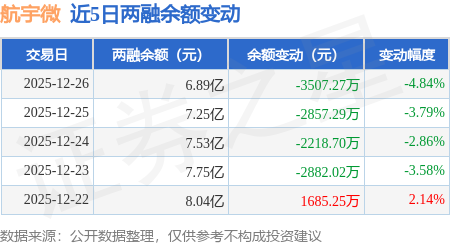 证券之星消息,12月26日,航宇微(300053)融资买入1.5亿元,融资偿还1.85亿元,融资净卖出3507.49万元,融资余额6.89亿元。