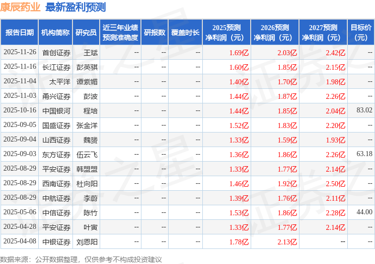 中航证券有限公司李蔚近期对康辰药业进行研究并发布了研究报告《KC1086获批FDA临床批准,源头创新能力显现》,给予康辰药业买入评级。
