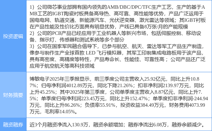 证券之星消息,博敏电子12月29日涨停收盘,收盘价12.95元。该股于9点51分涨停,1次打开涨停,截止收盘封单资金为4569.22万元,占其流通市值0.56%。