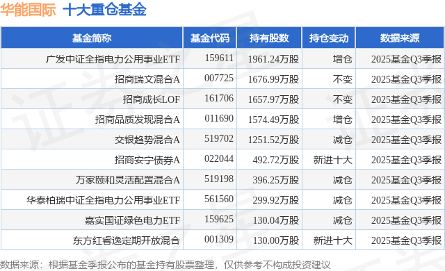 重仓华能国际的前十大公募基金请见下表: