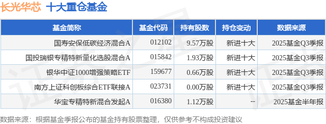 重仓长光华芯的公募基金请见下表: