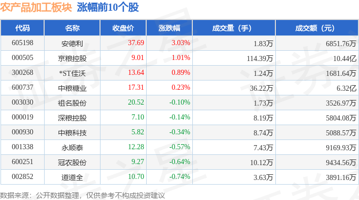 从资金流向上来看,当日农产品加工板块主力资金净流出3557.51万元,游资资金净流入3524.13万元,散户资金净流入33.38万元。农产品加工板块个股资金流向见下表: