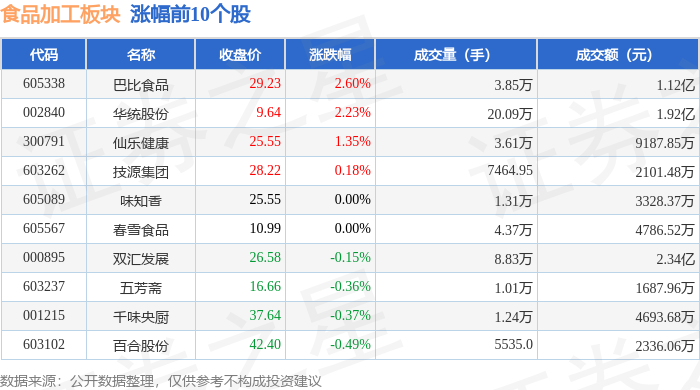 从资金流向上来看,当日食品加工板块主力资金净流出2.57亿元,游资资金净流出402.44万元,散户资金净流入2.61亿元。食品加工板块个股资金流向见下表: