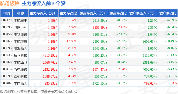 从资金流向上来看,当日航母板块主力资金净流入2.79亿元,游资资金净流出8185.39万元,散户资金净流出1.98亿元。航母板块个股资金流向见下表: