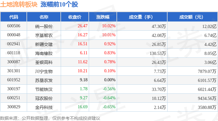 从资金流向上来看,当日土地流转板块主力资金净流出1.4亿元,游资资金净流入2492.67万元,散户资金净流入1.15亿元。土地流转板块个股资金流向见下表: