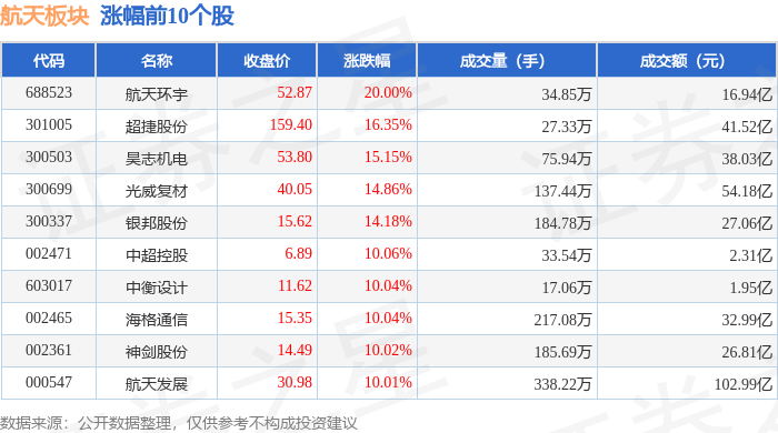 从资金流向上来看,当日航天板块主力资金净流出49.35亿元,游资资金净流出2.69亿元,散户资金净流入52.05亿元。航天板块个股资金流向见下表: