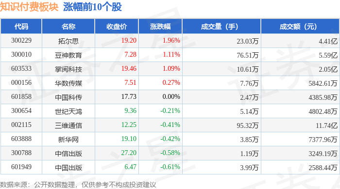 证券之星消息,12月29日知识付费板块较上一交易日下跌0.73%,读客文化领跌。当日上证指数报收于3965.28,上涨0.04%。深证成指报收于13537.1,下跌0.49%。知识付费板块个股涨跌见下表: