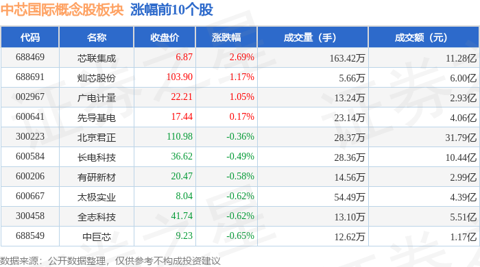 从资金流向上来看,当日中芯国际概念股板块主力资金净流出38.88亿元,游资资金净流入5.21亿元,散户资金净流入33.67亿元。中芯国际概念股板块个股资金流向见下表: