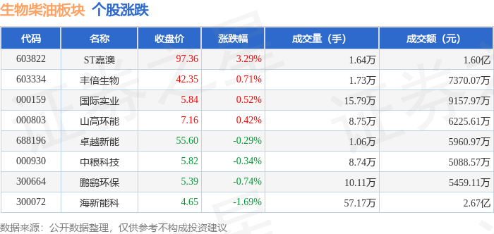 证券之星消息,12月29日生物柴油板块较上一交易日上涨0.01%,ST嘉澳领涨。当日上证指数报收于3965.28,上涨0.04%。深证成指报收于13537.1,下跌0.49%。生物柴油板块个股涨跌见下表:
