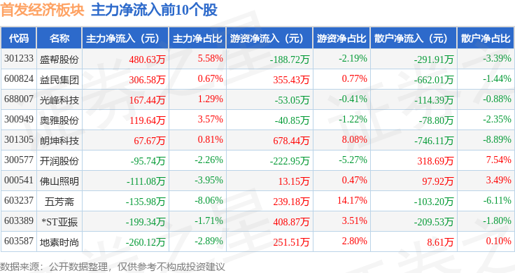 从资金流向上来看,当日首发经济板块主力资金净流出6.17亿元,游资资金净流入1.56亿元,散户资金净流入4.62亿元。首发经济板块个股资金流向见下表: