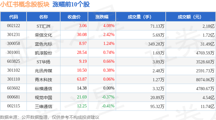 证券之星消息,12月29日小红书概念股板块较上一交易日下跌0.31%,遥望科技领跌。当日上证指数报收于3965.28,上涨0.04%。深证成指报收于13537.1,下跌0.49%。小红书概念股板块个股涨跌见下表: