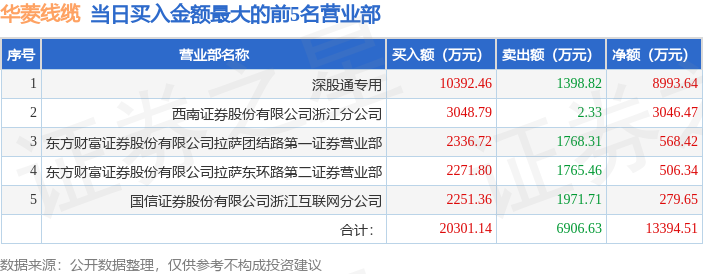 证券之星消息,沪深交易所2025年12月29日公布的交易公开信息显示,华菱线缆(001208)因日换手率达到20%的前5只证券登上龙虎榜。此次是近5个交易日内第5次上榜。
