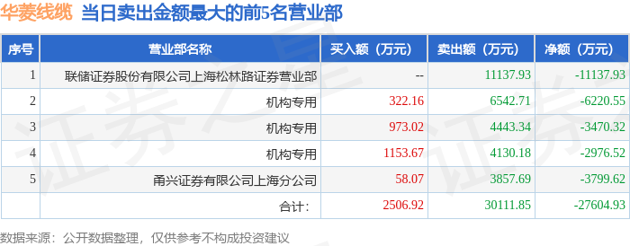 从龙虎榜公布的当日买卖数据来看,机构合计净卖出1.27亿元,北向资金合计净买入8993.64万元。上海松林路等知名游资榜上有名。(知名游资上海松林路一般指联储证券股份有限公司上海松林路证券营业部席位,根据市场资料整理,仅供参考)