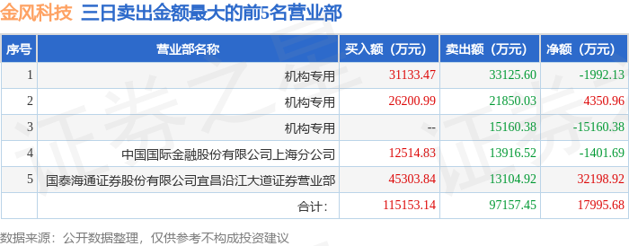证券之星消息,沪深交易所2025年12月29日公布的交易公开信息显示,金风科技(002202)因日涨幅偏离值达到7%的前5只证券,连续三个交易日内,涨幅偏离值累计达到20%的证券登上龙虎榜。此次是近5个交易日内第2次上榜。