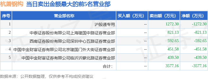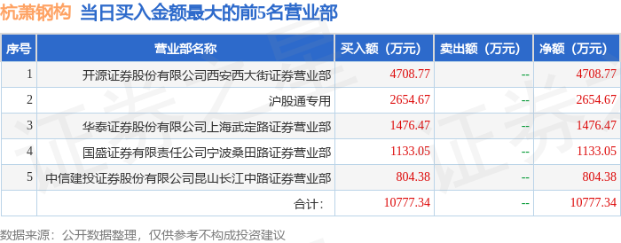 证券之星消息,沪深交易所2025年12月29日公布的交易公开信息显示,杭萧钢构(600477)因有价格涨跌幅限制的日收盘价格涨幅偏离值达到7%的前五只证券登上龙虎榜。此次是近5个交易日内第1次上榜。