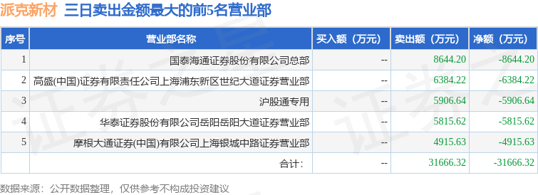 证券之星消息,沪深交易所2025年12月29日公布的交易公开信息显示,派克新材(605123)因非ST、*ST和S证券连续三个交易日内收盘价格涨幅偏离值累计达到20%的证券登上龙虎榜。此次是近5个交易日内第1次上榜。