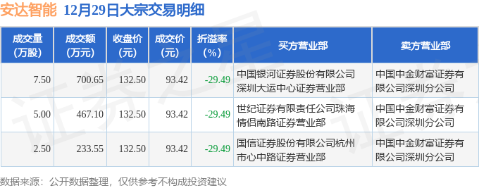 证券之星消息,12月29日安达智能发生大宗交易,交易数据如下: