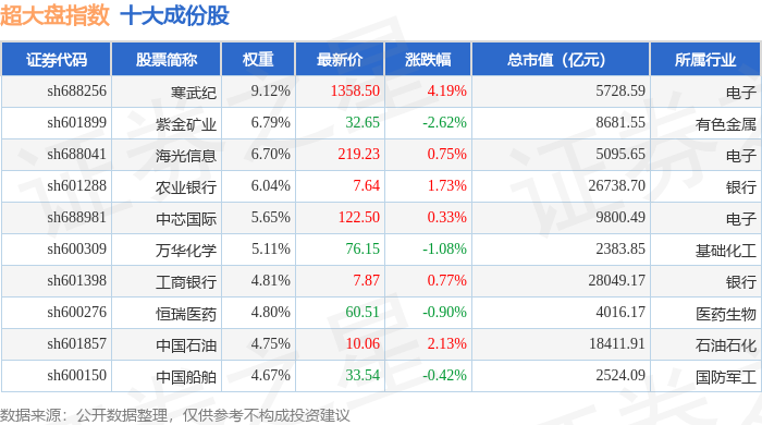 超大盘(000043)指数十大成份股详情如下:
