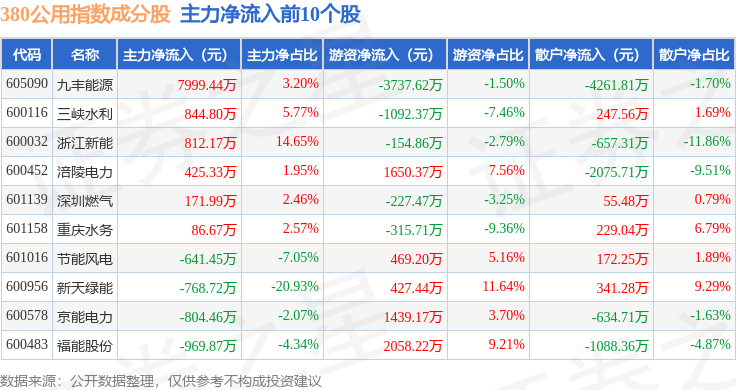 资金流向方面,380公用(000113)指数成份股当日主力资金净流出合计3.41亿元,游资资金净流入合计1.26亿元,散户资金净流入合计2.15亿元。成份股资金流向详情见下表:
