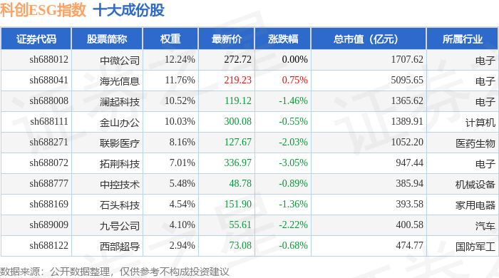 科创ESG(000691)指数十大成份股详情如下: