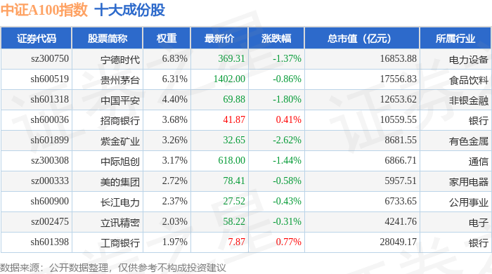 中证A100(000903)指数十大成份股详情如下:
