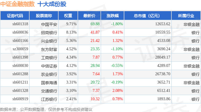 中证金融(000934)指数十大成份股详情如下: