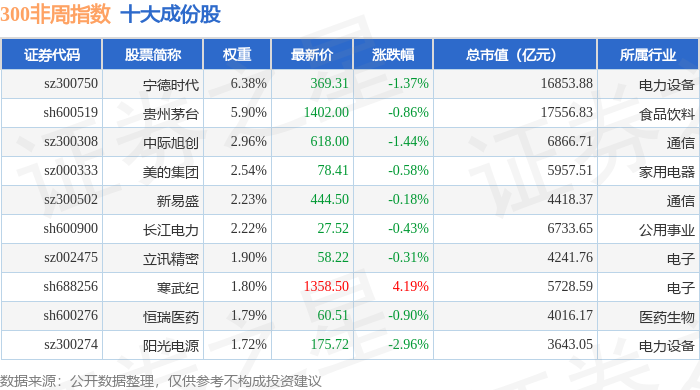 300非周(000969)指数十大成份股详情如下: