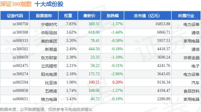深证300(399007)指数十大成份股详情如下: