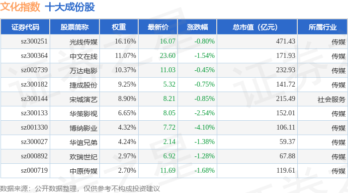 资金流向方面,文化指数(399248)成份股当日主力资金净流出合计6.81亿元,游资资金净流入合计1.61亿元,散户资金净流入合计5.21亿元。成份股资金流向详情见下表: