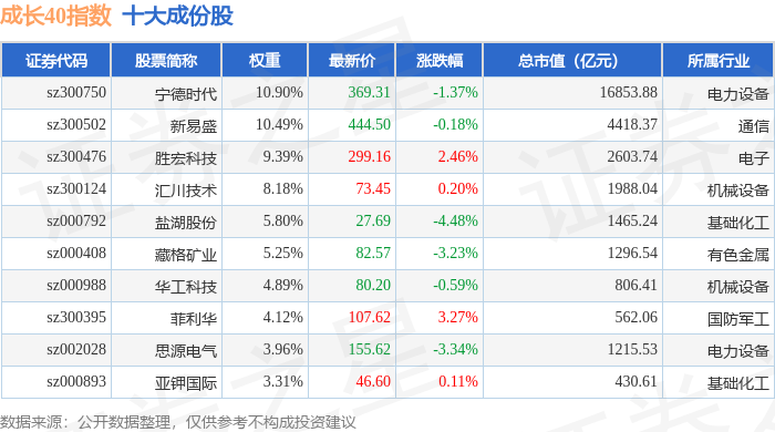 证券之星消息,12月29日,成长40(399326)指数报收于6431.96点,跌0.68%,成交849.34亿元,换手率2.56%。当日该指数成份股中,上涨的有16家,沪电股份以6.91%的涨幅领涨,下跌的有24家,盐湖股份以4.48%的跌幅领跌。