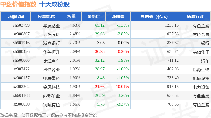 证券之星消息,12月29日,中盘价值(399375)指数报收于5868.48点,跌0.71%,成交691.45亿元,换手率1.29%。当日该指数成份股中,上涨的有24家,金风科技以10.01%的涨幅领涨,下跌的有70家,上海电力以5.03%的跌幅领跌。