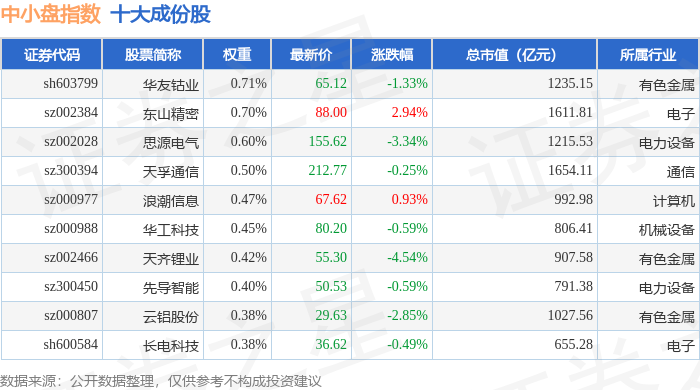 中小盘(399401)指数十大成份股详情如下: