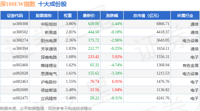 深100EW(399632)指数十大成份股详情如下: