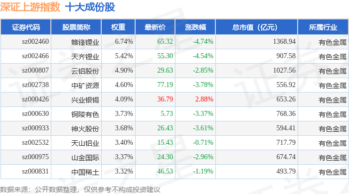 证券之星消息,12月29日,深证上游(399704)指数报收于6720.59点,跌1.8%,成交703.16亿元,换手率3.72%。当日该指数成份股中,上涨的有16家,湖南白银以7.22%的涨幅领涨,下跌的有31家,国城矿业以9.65%的跌幅领跌。