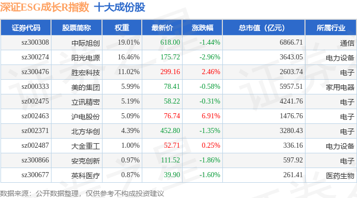 深证ESG成长R(470060)指数十大成份股详情如下: