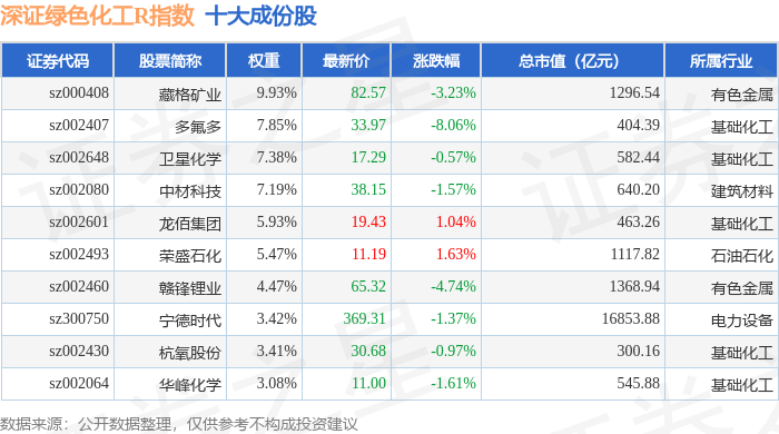深证绿色化工R(470076)指数十大成份股详情如下: