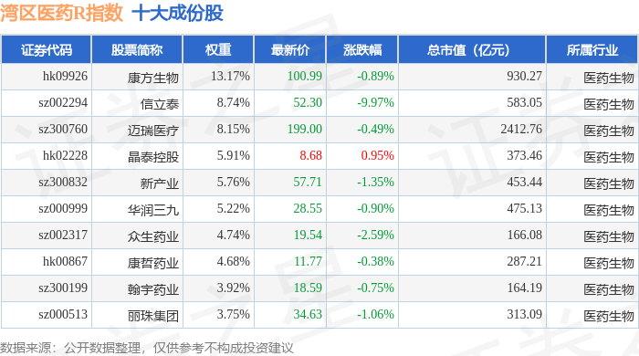 湾区医药R(480013)指数十大成份股详情如下: