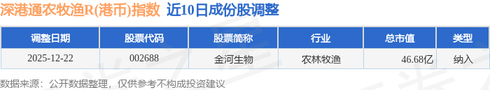近10日内深港通农牧渔R(港币)(483052)指数成份股做了调整,新纳入了1只股票。
