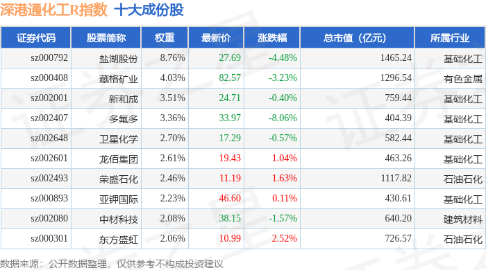 深港通化工R(483063)指数十大成份股详情如下: