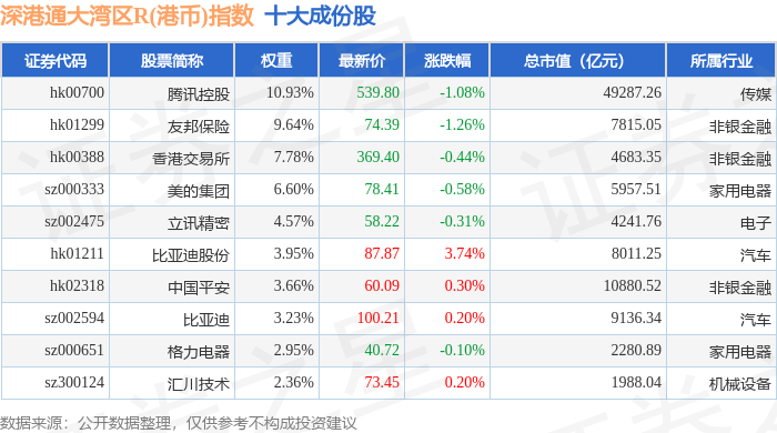 深港通大湾区R(港币)(483090)指数十大成份股详情如下: