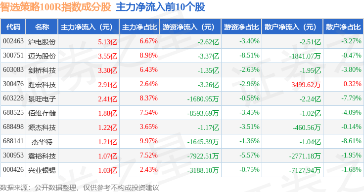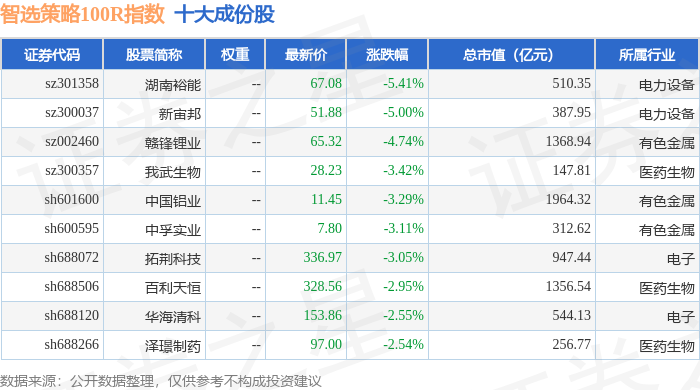 智选策略100R(489015)指数十大成份股详情如下:
