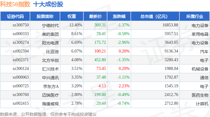 证券之星消息,12月29日,科技50(970080)指数报收于3180.27点,跌0.57%,成交1166.33亿元,换手率1.77%。当日该指数成份股中,上涨的有19家,金风科技以10.01%的涨幅领涨,下跌的有31家,欣旺达以11.39%的跌幅领跌。