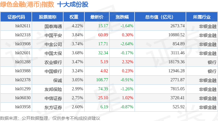 绿色金融(港币)(980053)指数十大成份股详情如下: