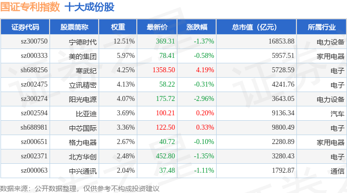 国证专利(980070)指数十大成份股详情如下: