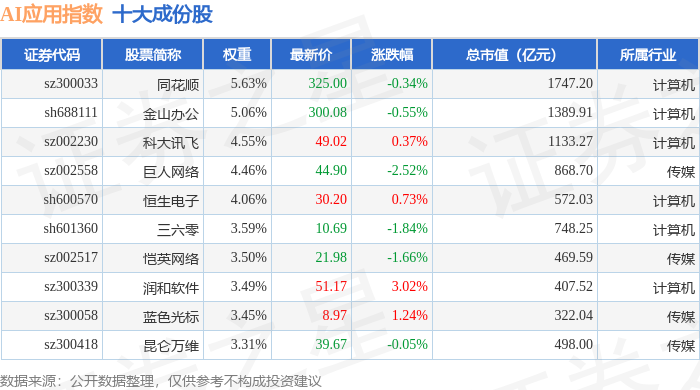 AI应用(980112)指数十大成份股详情如下: